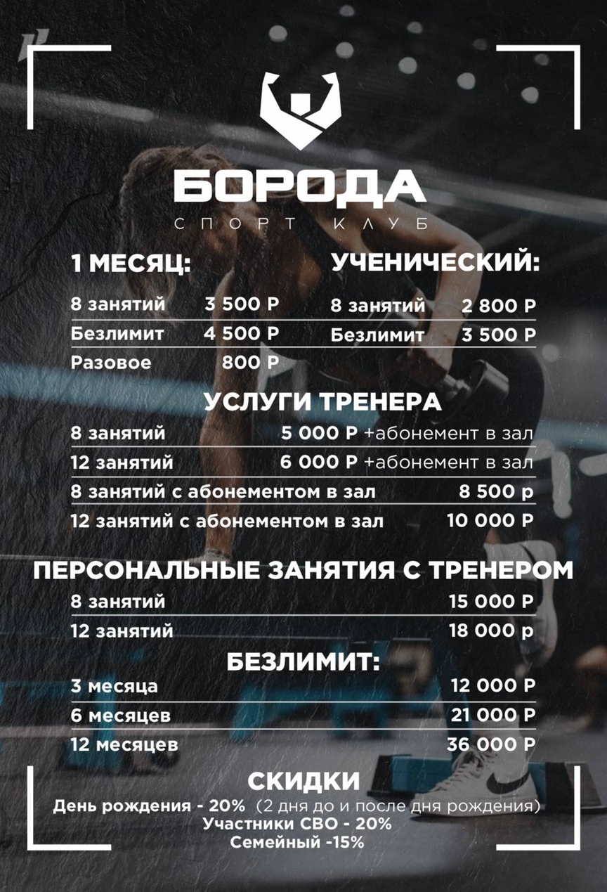 АБОНЕМЕНТЫ СПОРТ КЛУБА «БОРОДА»